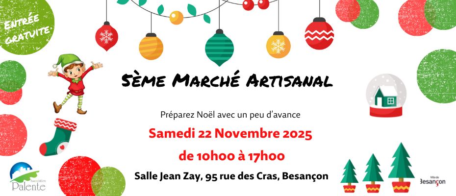 - Marché artisanal de Noêl du samedi 22 Novembre (9h00 à 17h00)