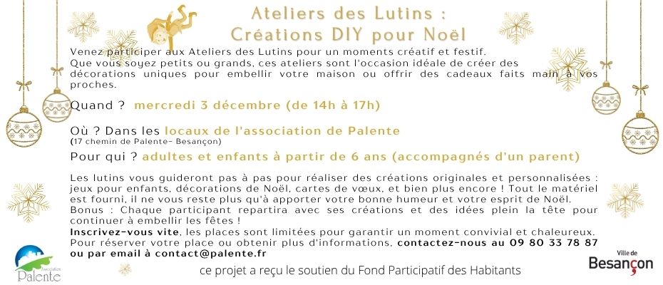 - Atelier des Lutins du mercredi 3 Décembre. Pour vous inscrire, cliquez ici