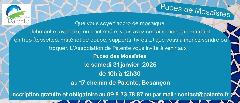 - SAMEDI 31 JANVIER (10h-12h30) : PUCES DES MOSAISTES