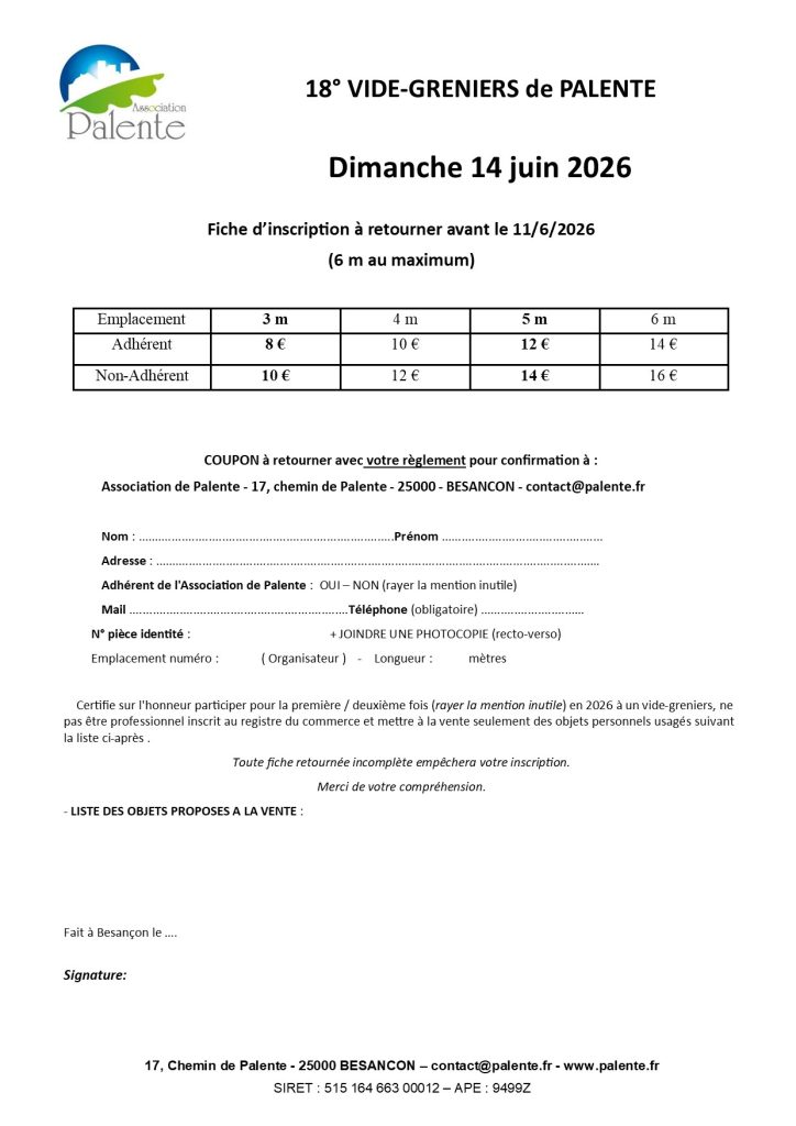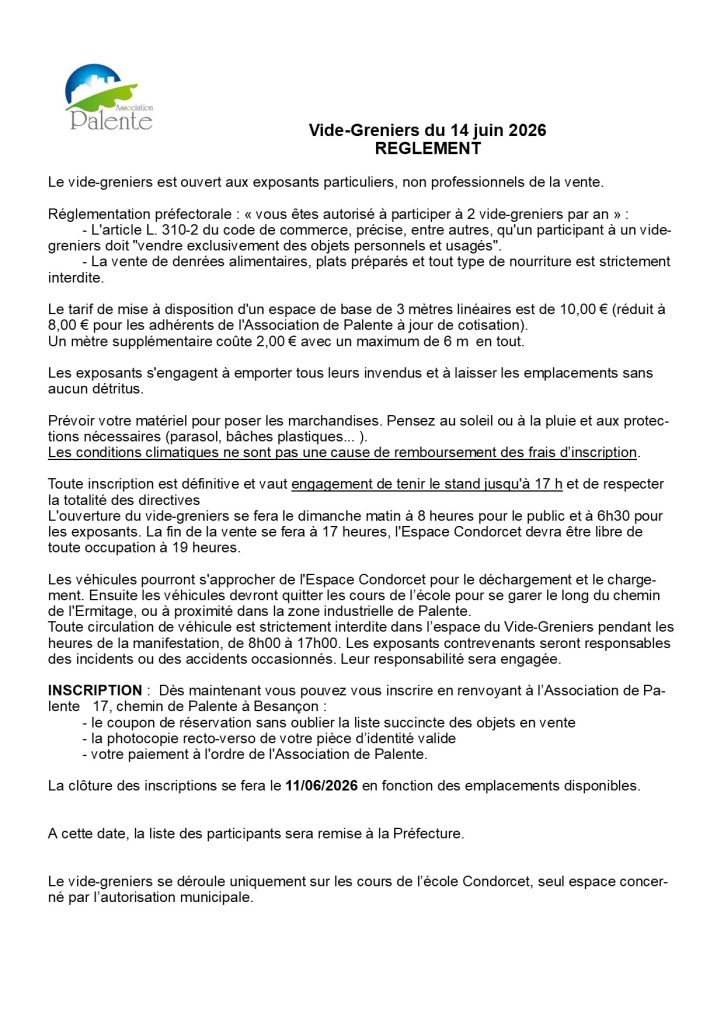 L’inscription au Vide-Greniers vaut acceptation du règlement ci-joint