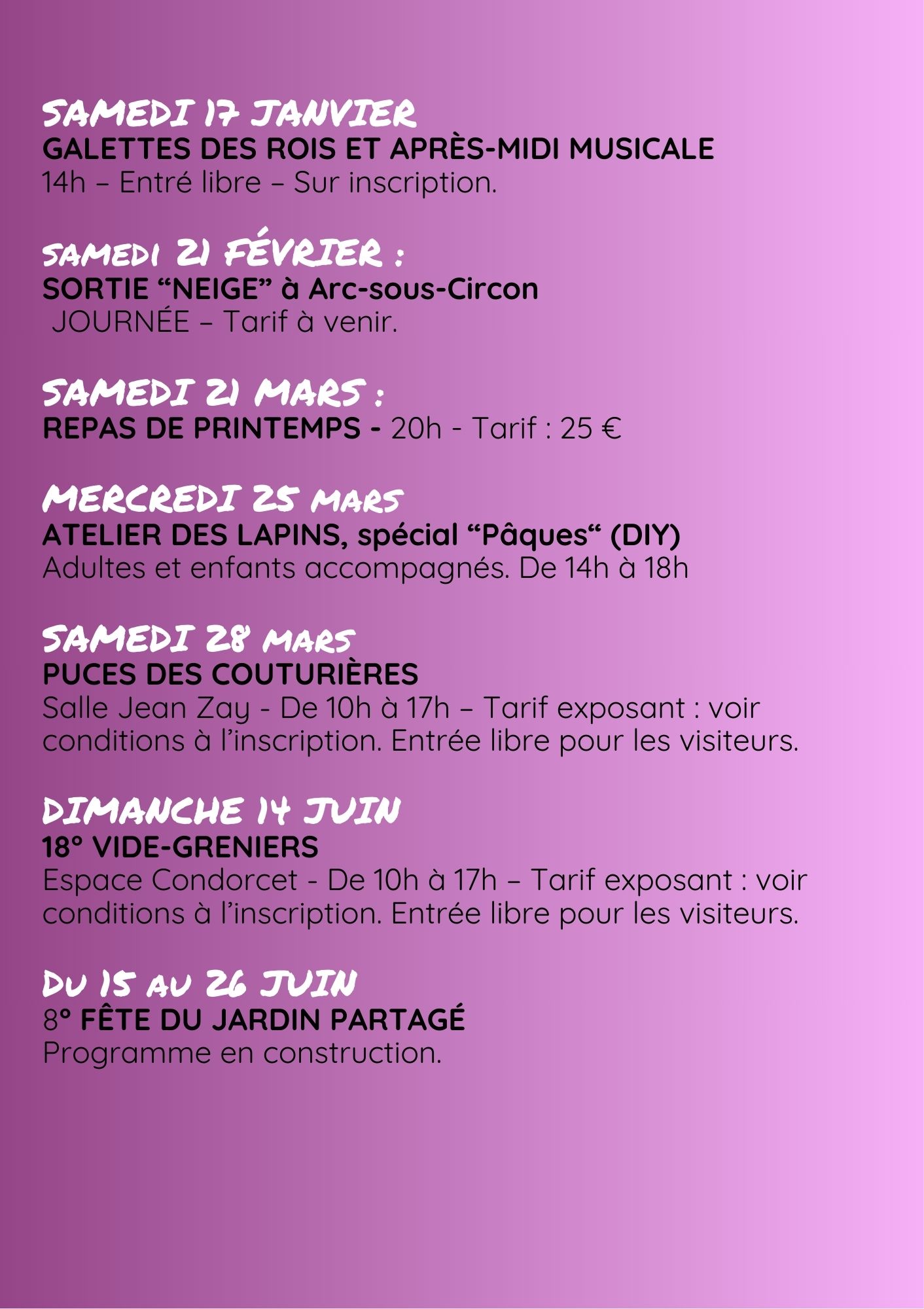ACTIVITES PONCTUELLES – 1er SEMESTRE 2026